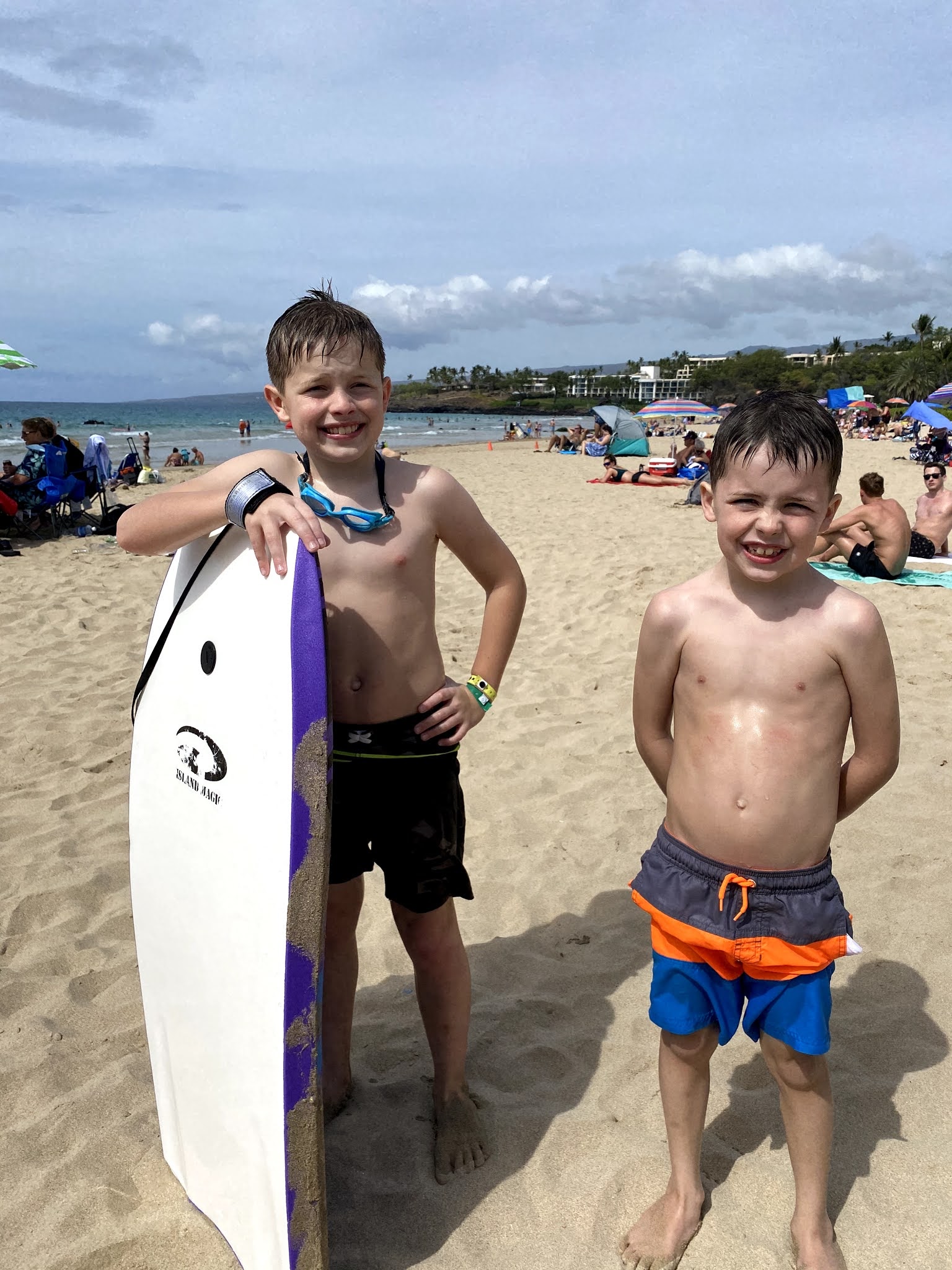 We went to Hapuna Beach which is "The Beach" to go to. It was fun but not worth the hype. Landon and Parker had the best time boogie boarding and I could hear them laughing over the crashing of the waves. Marcus and Ethan walked around looking for girls but only ran into some friends from WA.